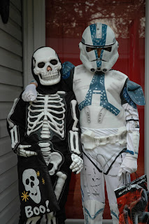 Right before leaving, I checked on-line for the activities going on at the beach, and found the campground had planned a two-hour trick-or-treat extravaganza for the kids. I sent the boys to grab a costume from their closet, and out the door we went.